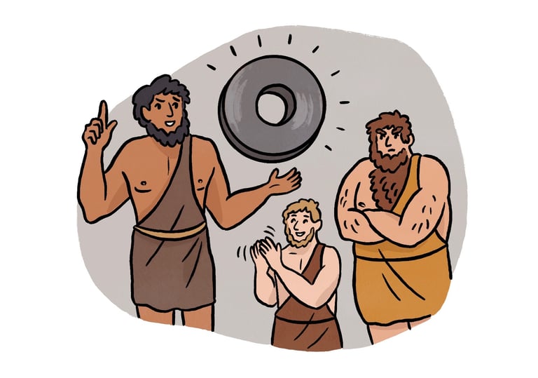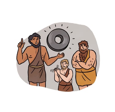 Unable to find food, a group of cavemen must strike the balance between philosophy and survival. However, when one of them invents the wheel, they discover a newfound prosperity that soon becomes a problem of its own.